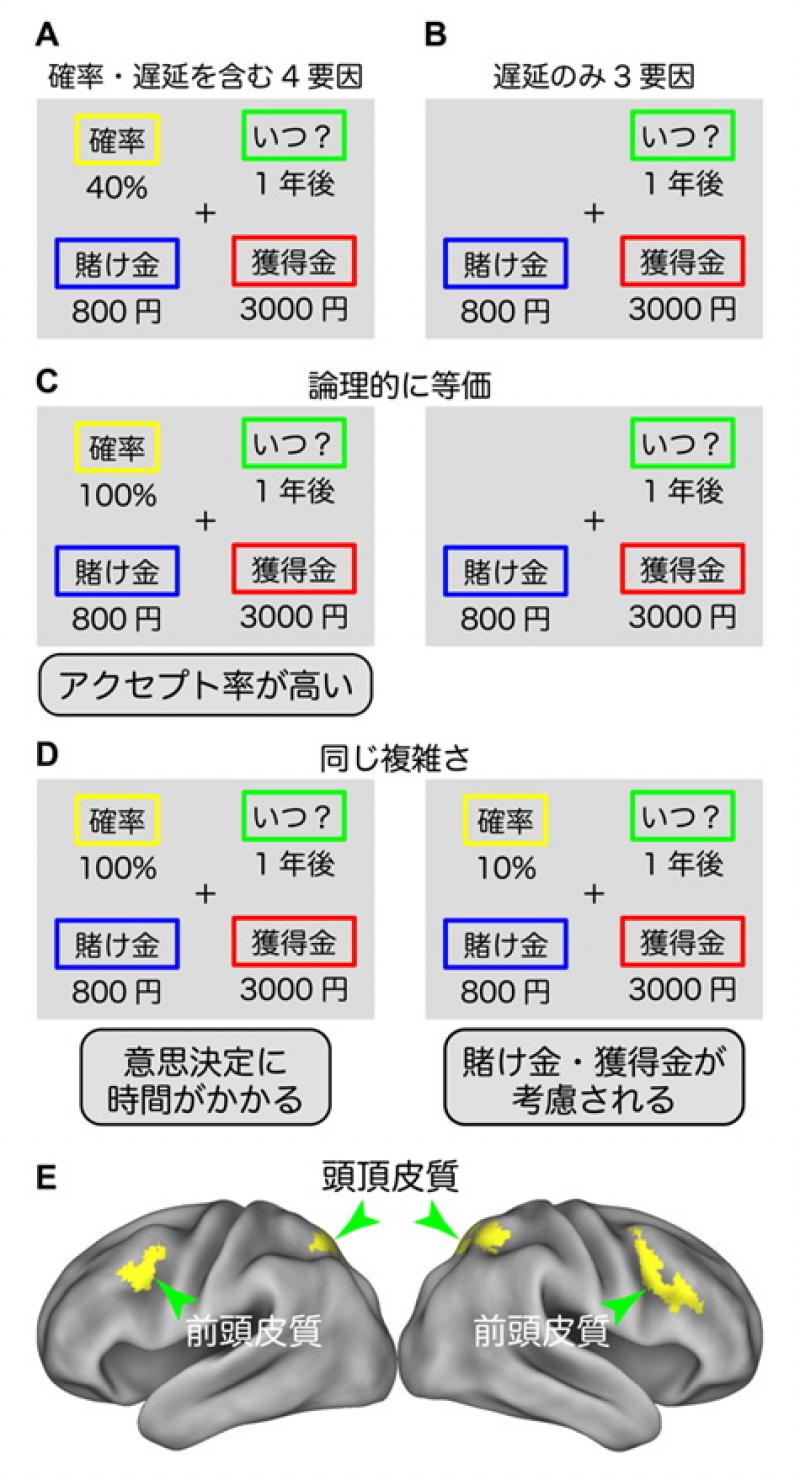 • 不確実性と待ち時間が同時に変化する複雑なギャンブルをするときのヒト脳の活動を測定した。